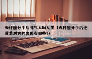 通过这篇文章,我们希望加深你对天秤座分手后脾气大吗女生的理解,并扩展对天秤座分手后还爱着对方的表现有哪些?的认…